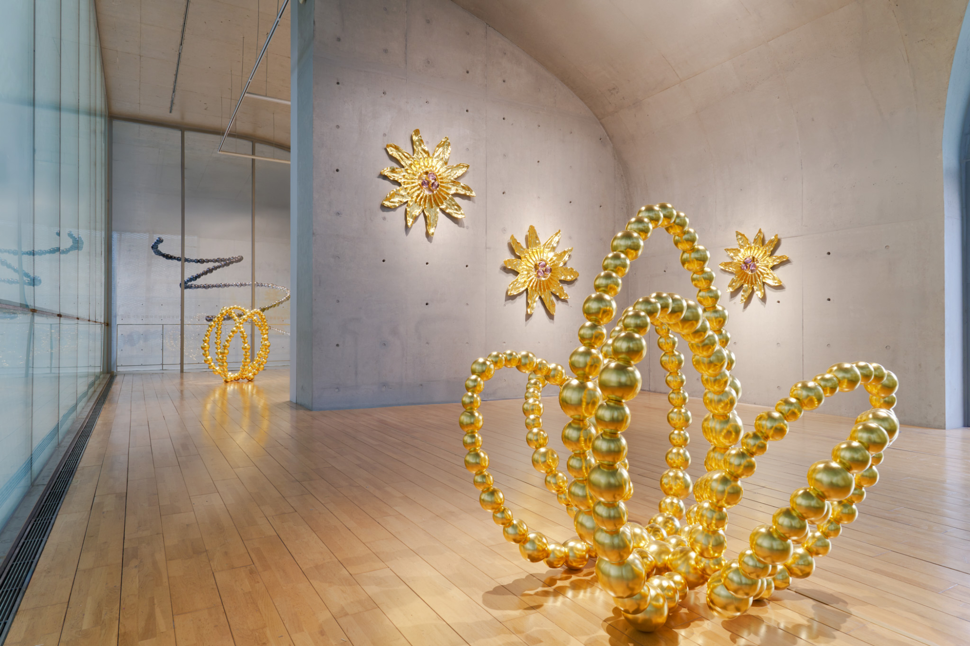 A estética deslumbrante de Othoniel orbita em torno da noção de geometria emocional. Através da repetição de elementos modulares como tijolos de vidro ou suas reconhecíveis contas, o artista cria obras de arte que refletem a complexidade da natureza humana. Os trabalhos apresentados transitam no limiar entre o íntimo e o monumental – pinturas delicadas sobre folhas de ouro convivem com as séries radiantes de tijolos de vidro e com os grandes pendentes de contas. Em suas pinturas, Othoniel se interessa enfaticamente no simbolismo potente das flores, assim como materialidade, focada especificamente na ambiguidade entre a força e a fragilidade do vidro. Nelas, o artista continua a explorar sua investigação acerca da natureza através de uma abordagem contemplativa e minimalista, retratando sua visão romântica do mundo em que prazeres simples, como a fauna, são repletos de significados ocultos.