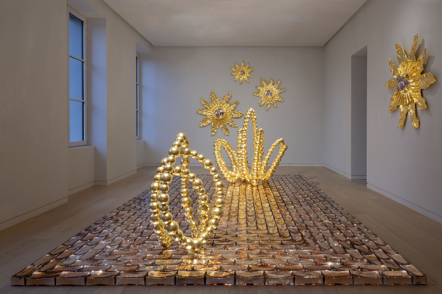 A estética deslumbrante de Othoniel orbita em torno da noção de geometria emocional. Através da repetição de elementos modulares como tijolos de vidro ou suas reconhecíveis contas, o artista cria obras de arte que refletem a complexidade da natureza humana. Os trabalhos apresentados transitam no limiar entre o íntimo e o monumental – pinturas delicadas sobre folhas de ouro convivem com as séries radiantes de tijolos de vidro e com os grandes pendentes de contas. Em suas pinturas, Othoniel se interessa enfaticamente no simbolismo potente das flores, assim como materialidade, focada especificamente na ambiguidade entre a força e a fragilidade do vidro. Nelas, o artista continua a explorar sua investigação acerca da natureza através de uma abordagem contemplativa e minimalista, retratando sua visão romântica do mundo em que prazeres simples, como a fauna, são repletos de significados ocultos.